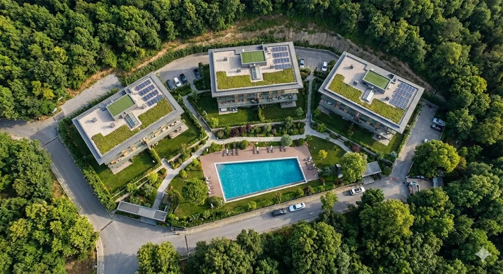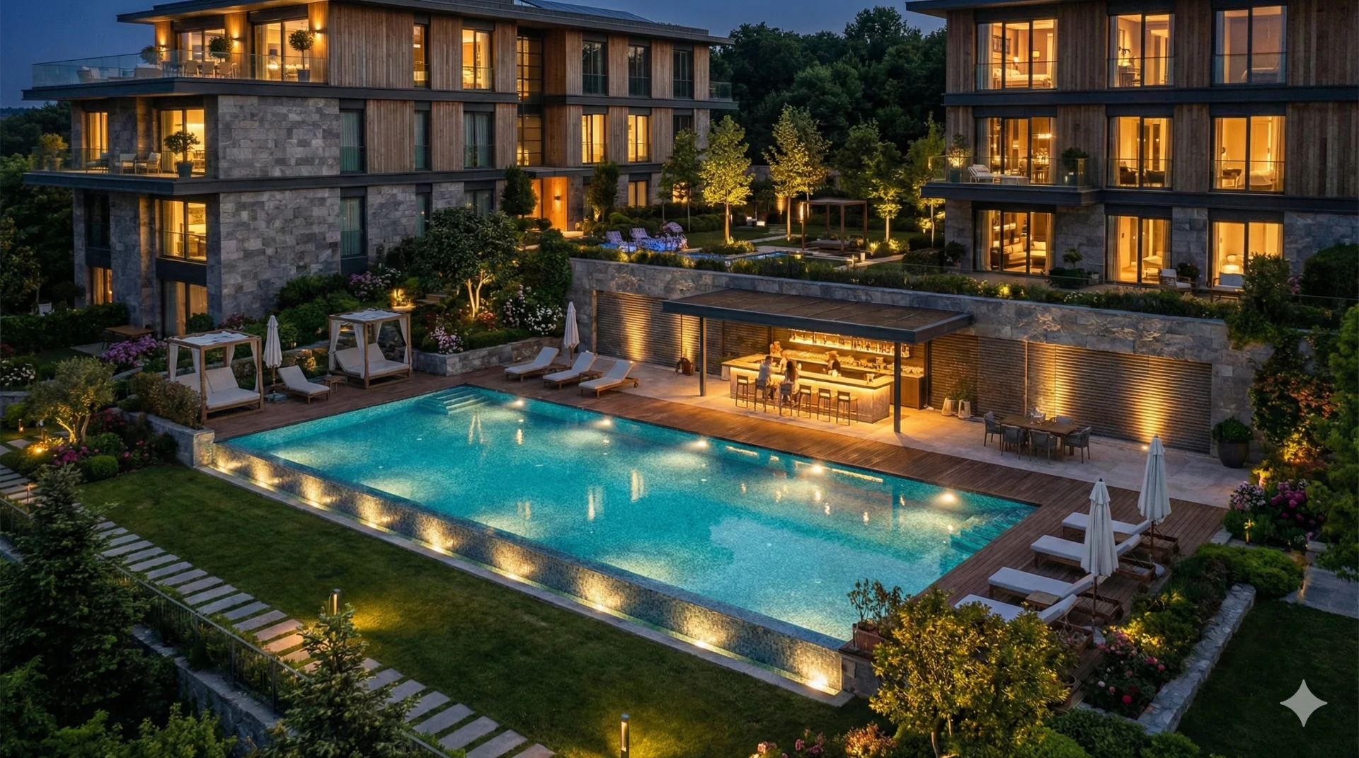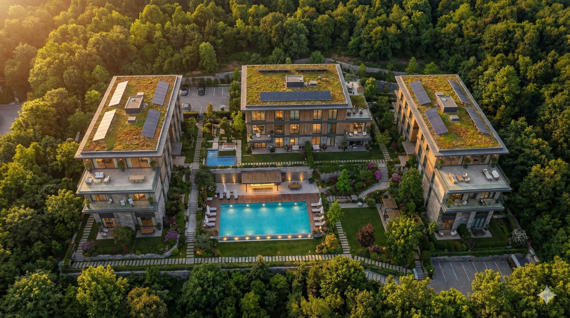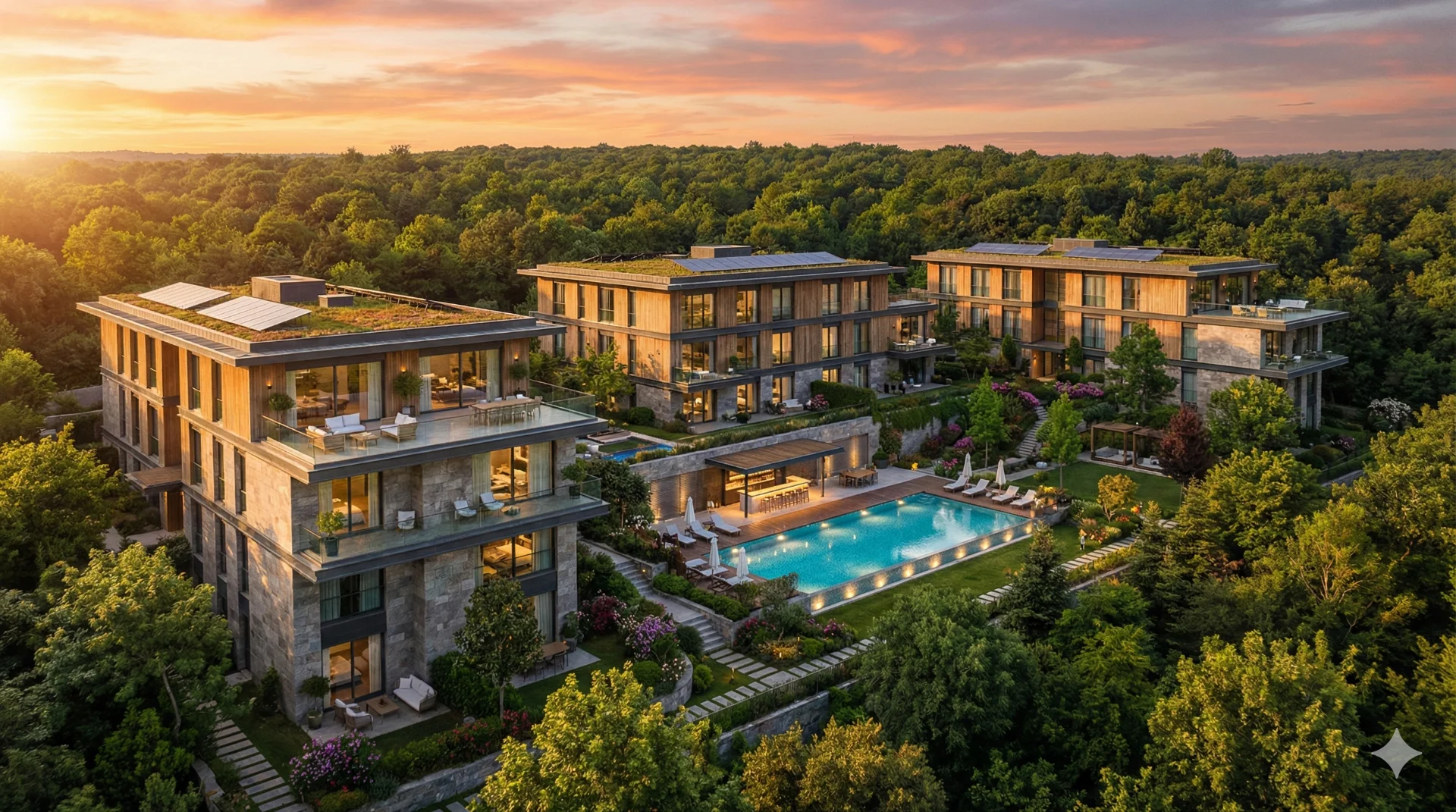 Şehrin gürültüsünden uzak, doğayla iç içe lüks bir yaşam projesi. Modern mimari ve yatay yapılaşmanın eşsiz uyumu.